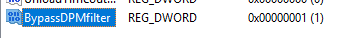 - Add a DWORD (32 Bit) called ‘BypassDPMfilter with a value of 1.