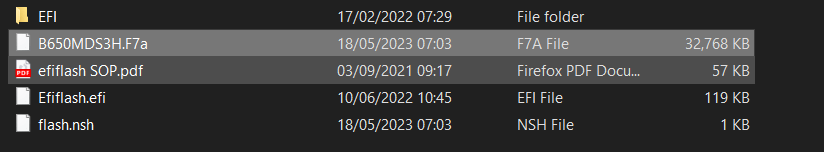 - Once formatted, go to the relevant manufacturers page for your motherboard and download the latest BIOS update, for me, it’s version F7a, which can be found here – https://www.gigabyte.com/Motherboard/B650M-DS3H-rev-10/support#support-dl-bios