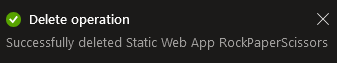 If you created a new Resource Group to host the Static Web App then navigate to the Resource Group and click Delete resource group in the action bar, otherwise select Delete in the Static Web App view, then select Yes.